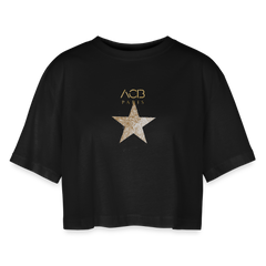 - Women's oversized cropped T-shirt with a ribbed crew neck and side seams